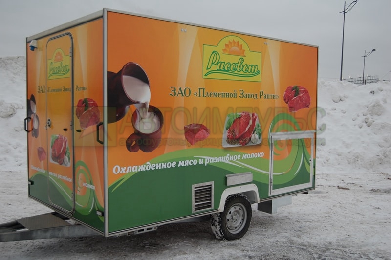 Прицеп Купава 813210 для торговли мясо-молочной продукцией.